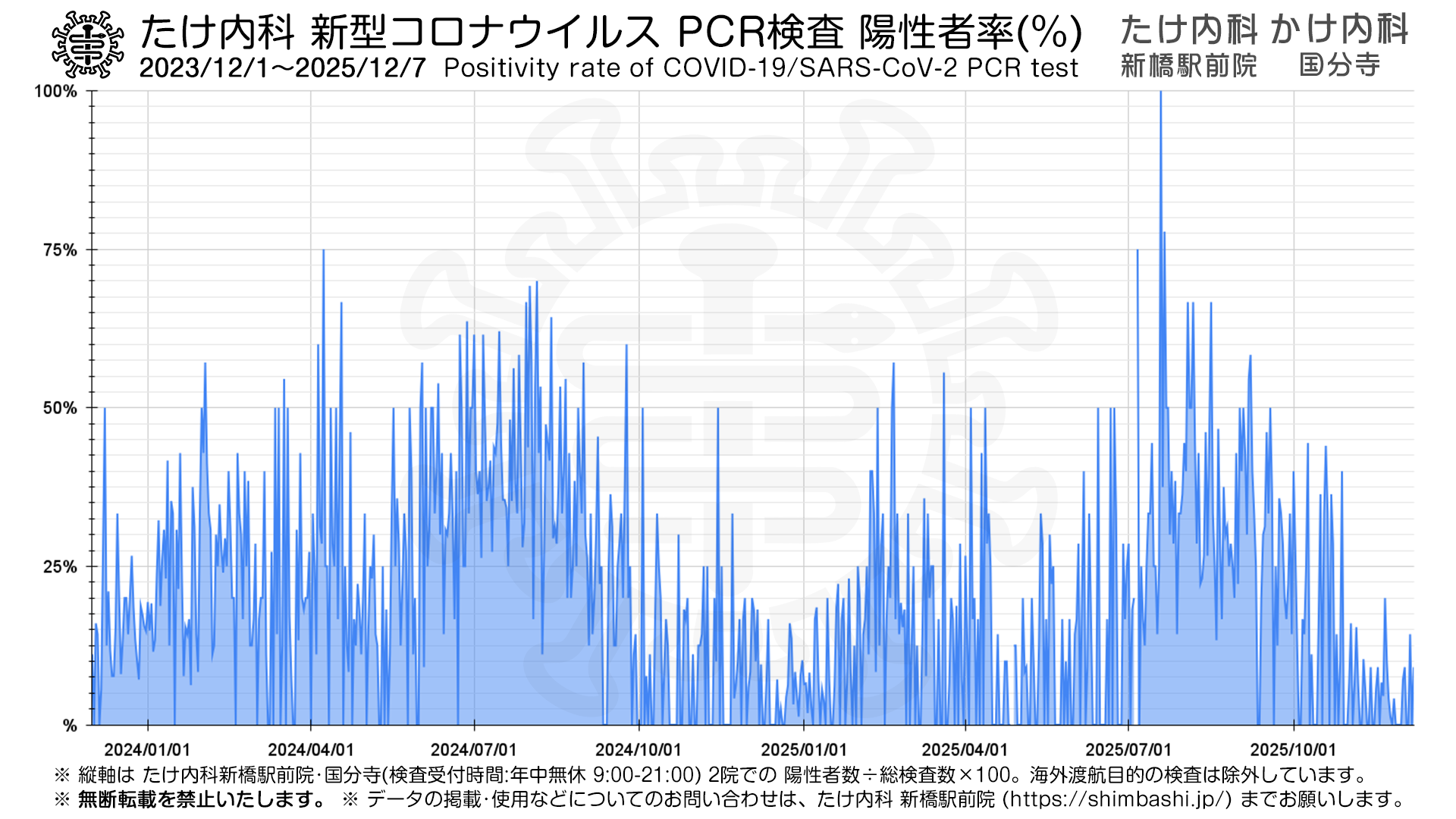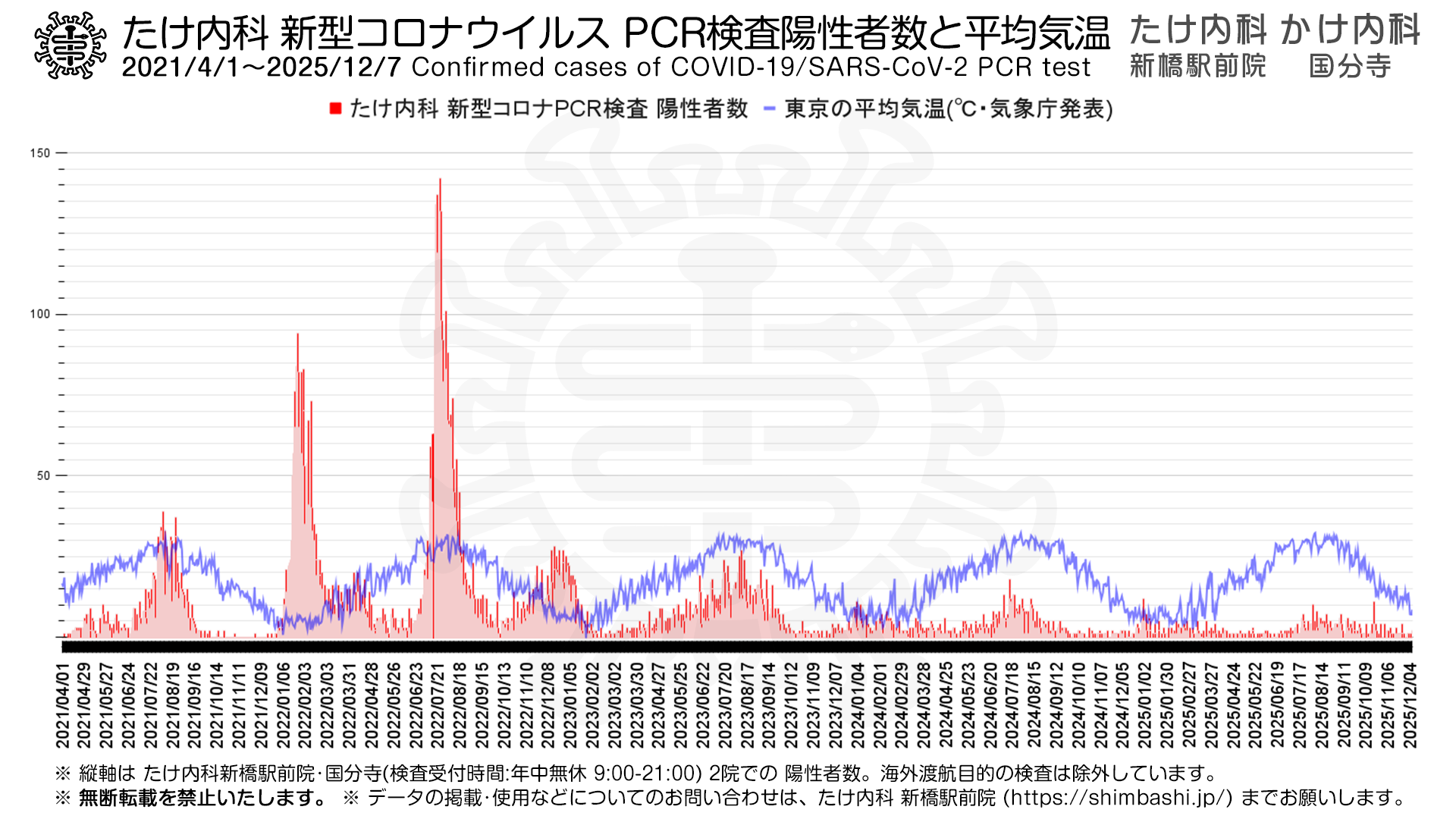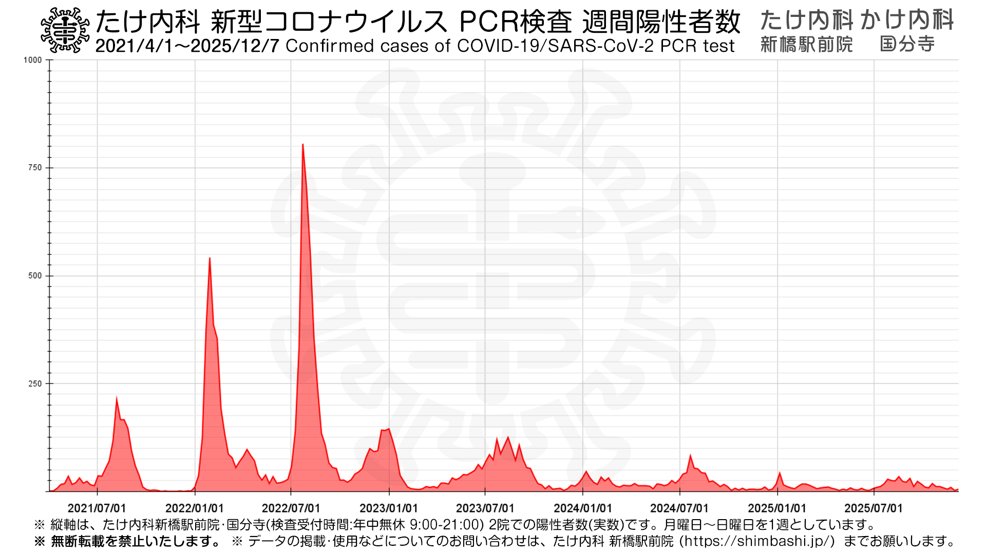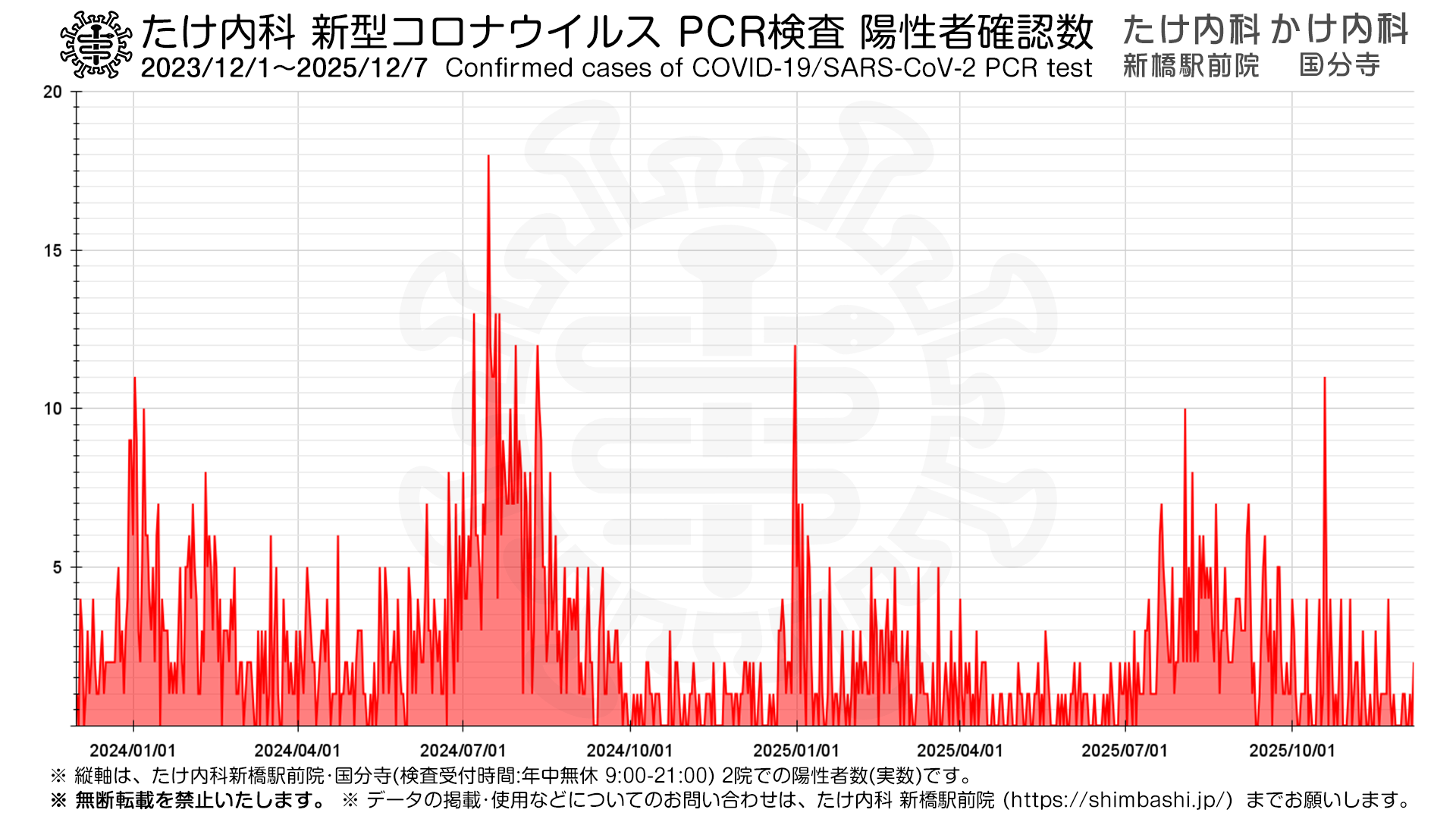 ※上記は、たけ内科 新橋駅前院・かけ内科 国分寺 にて新型コロナウイルス PCR検査を行った症例についてのデータです。