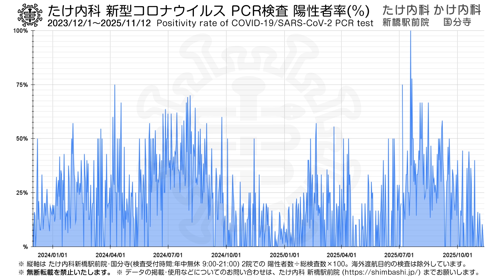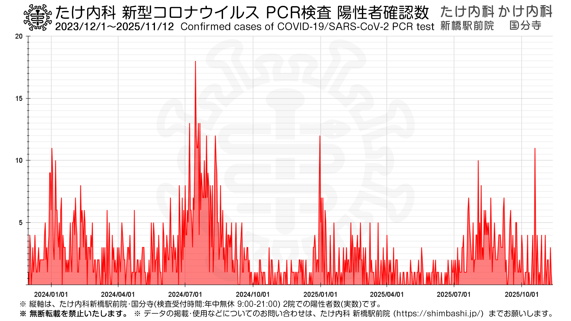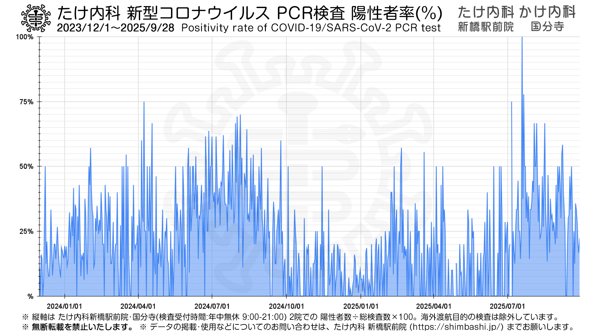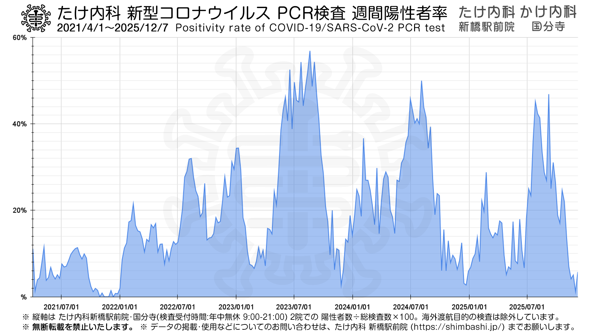 ※上記は、たけ内科 新橋駅前院・かけ内科 国分寺 にて新型コロナウイルス PCR検査を行った症例についてのデータです。