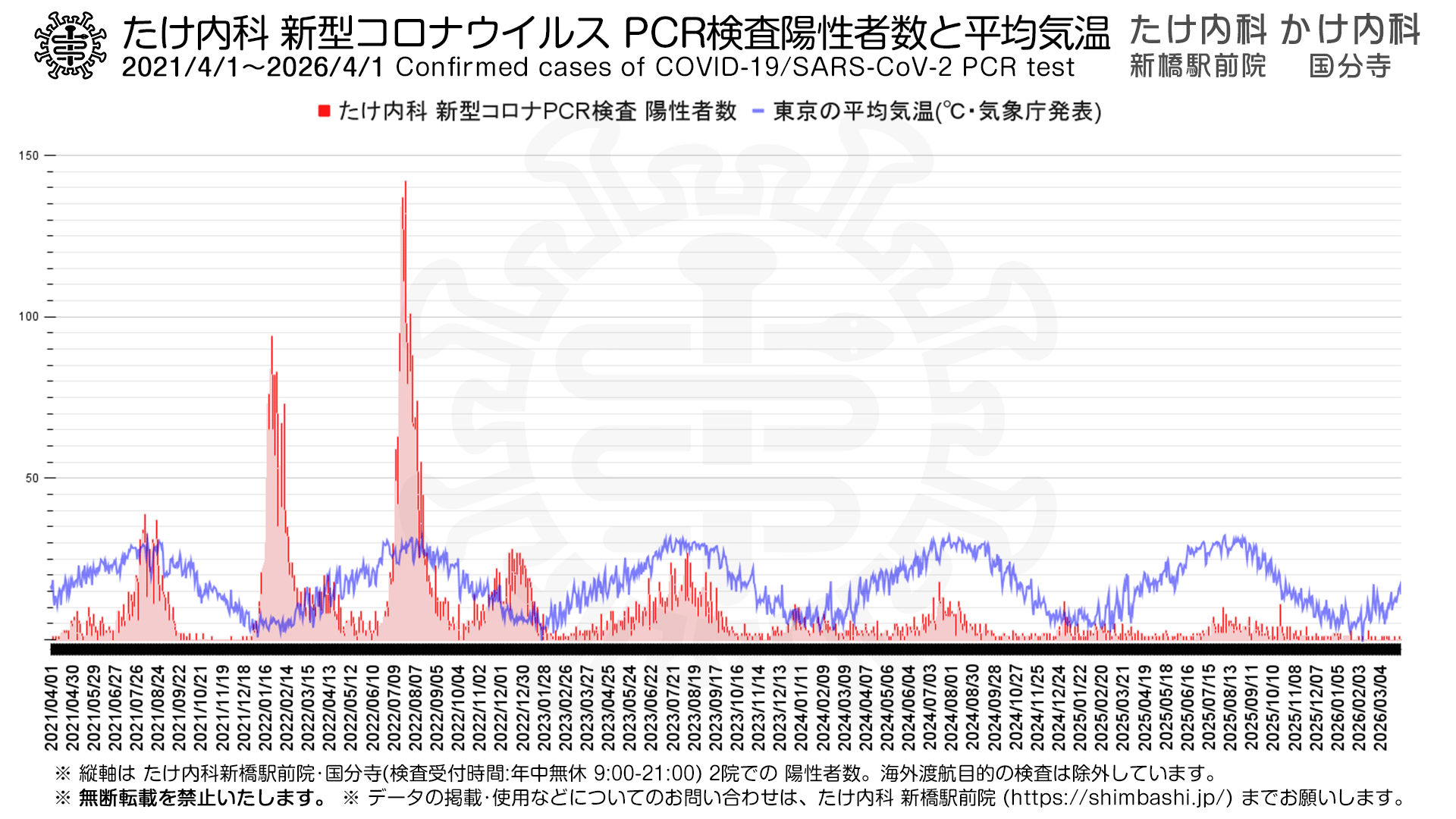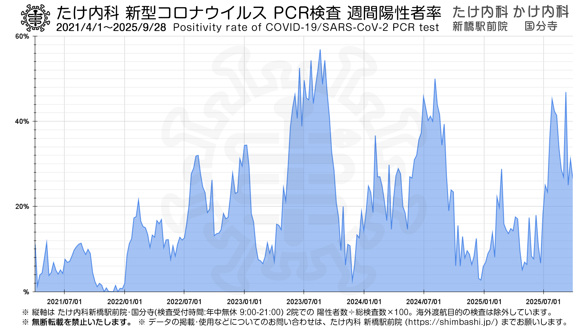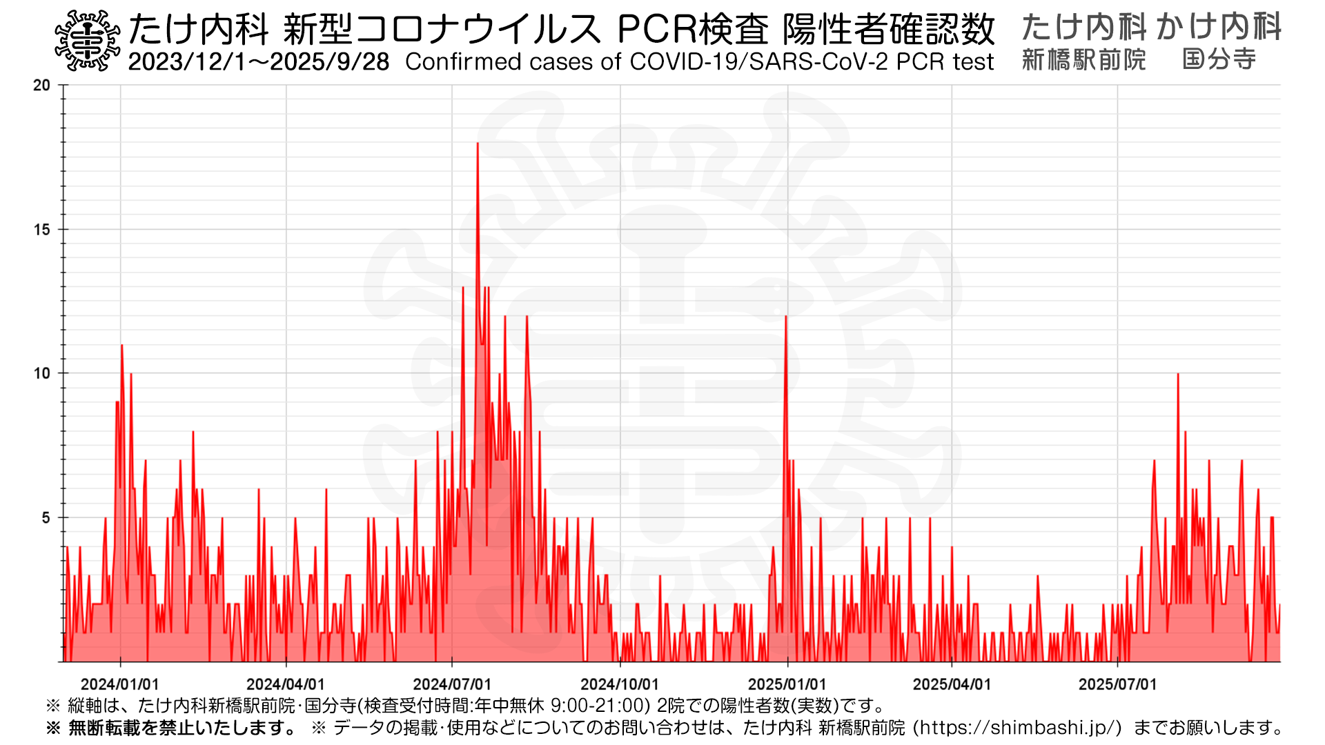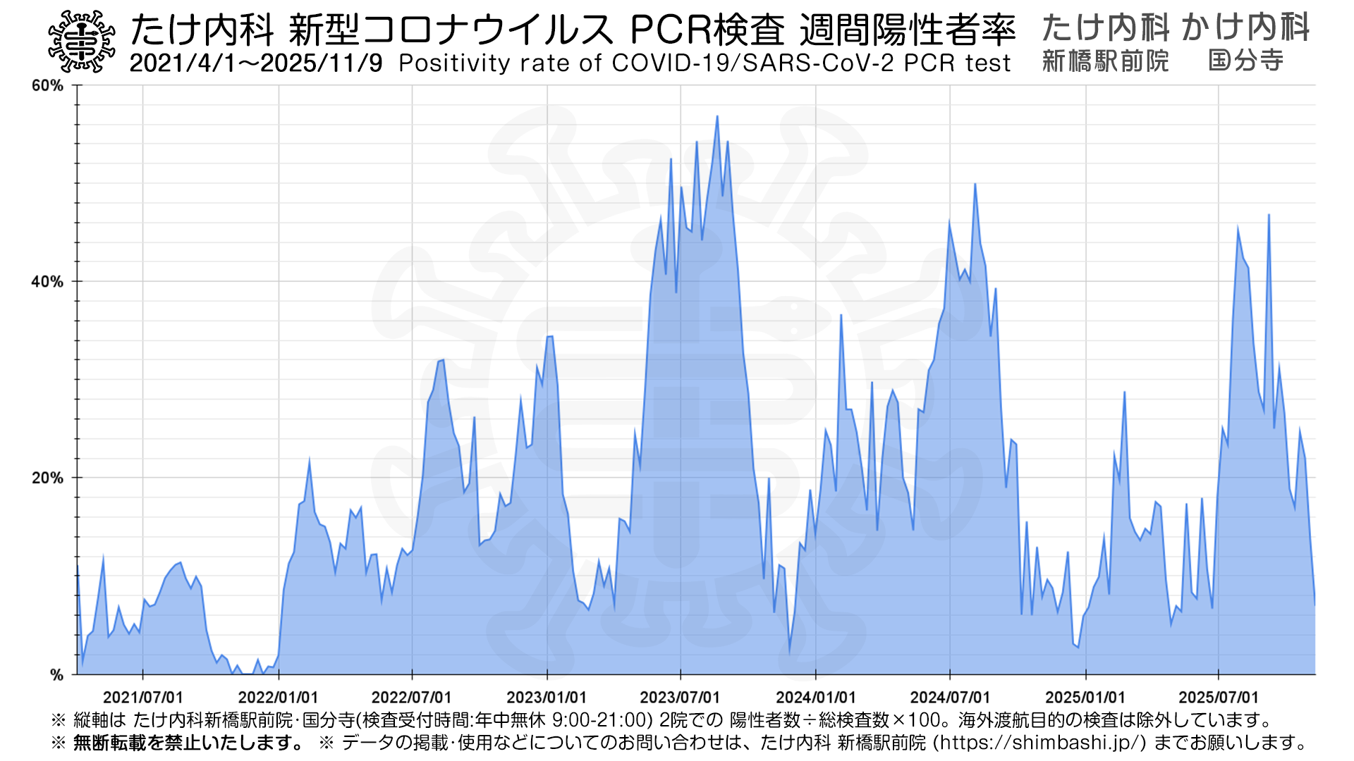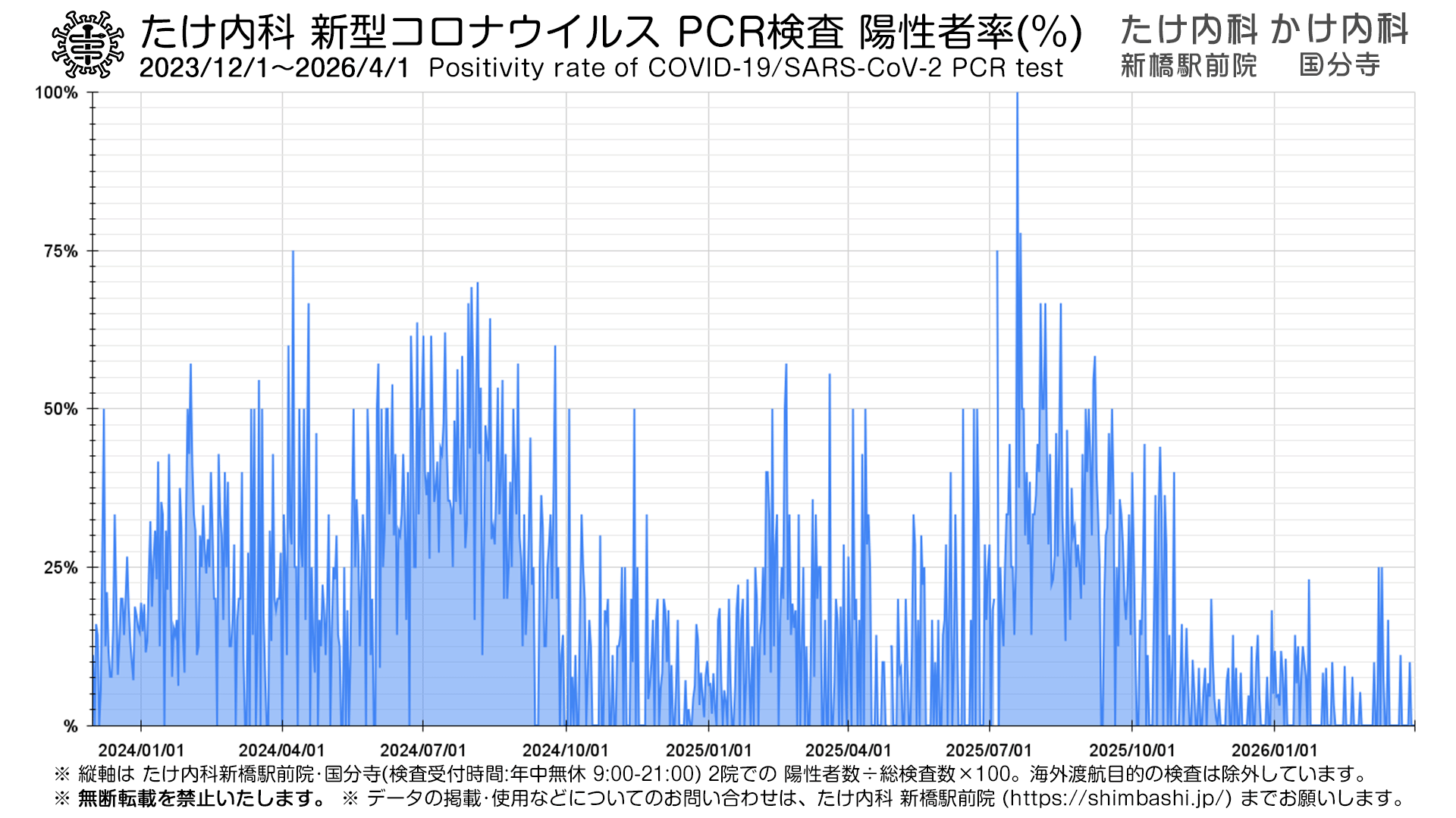 ※上記は、たけ内科 新橋駅前院・かけ内科 国分寺 にて新型コロナウイルス PCR検査を行った症例についてのデータです。