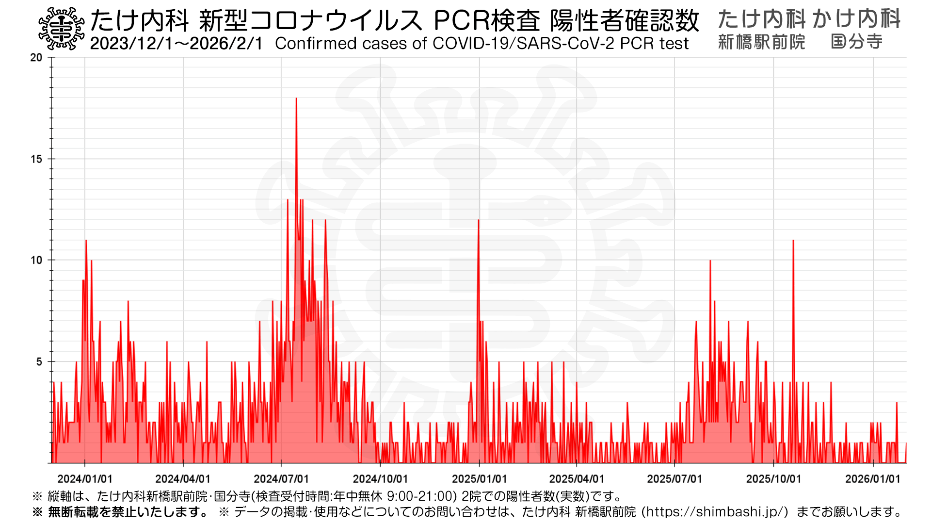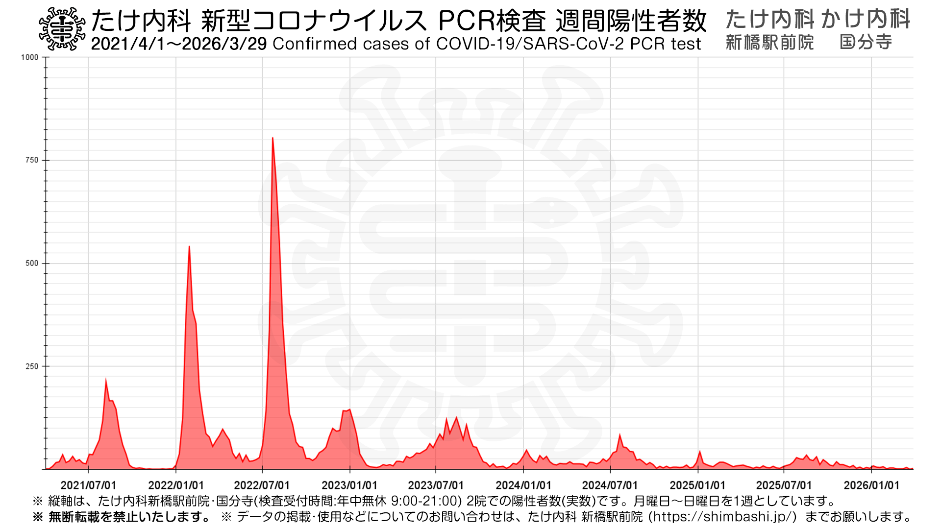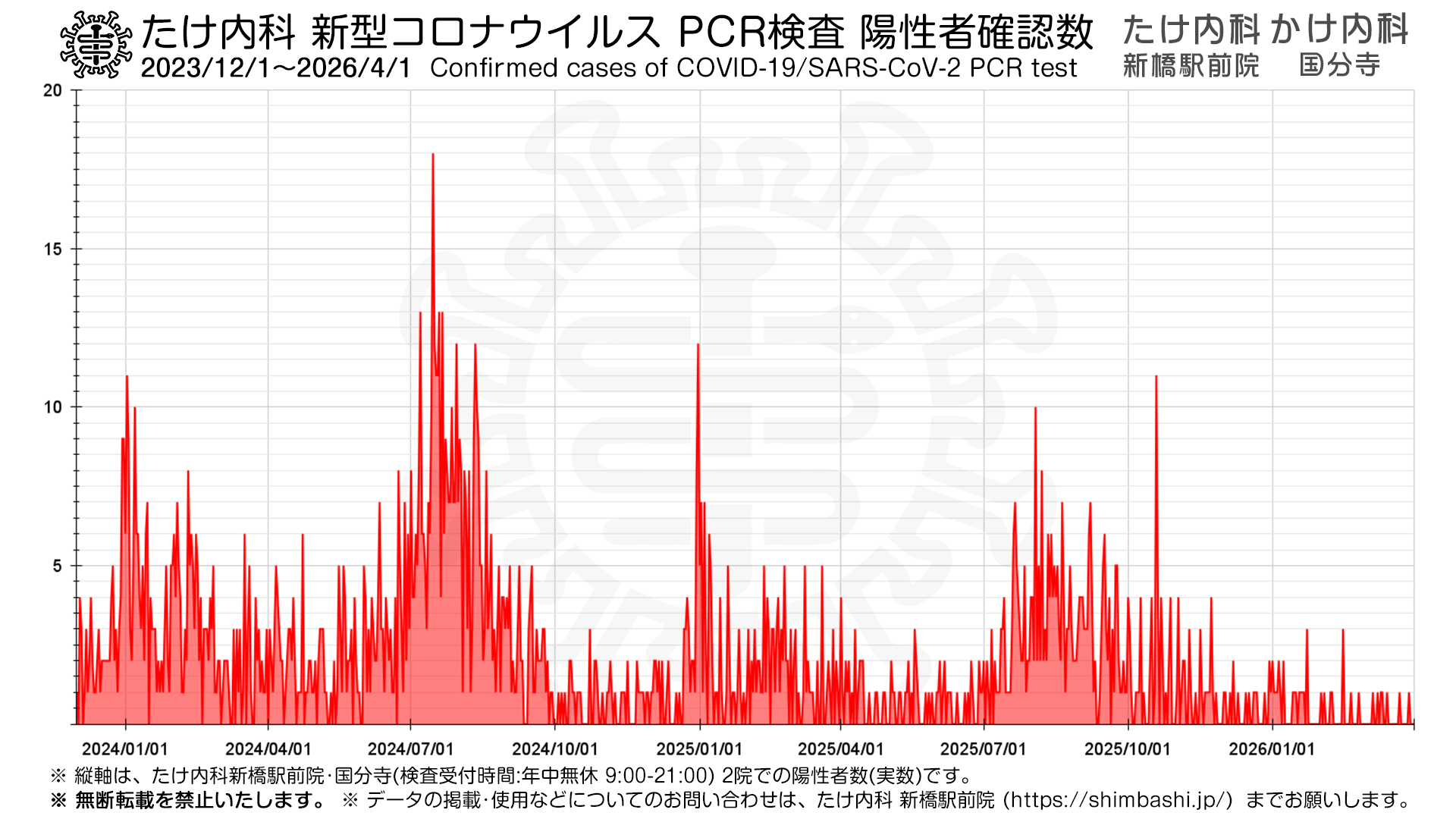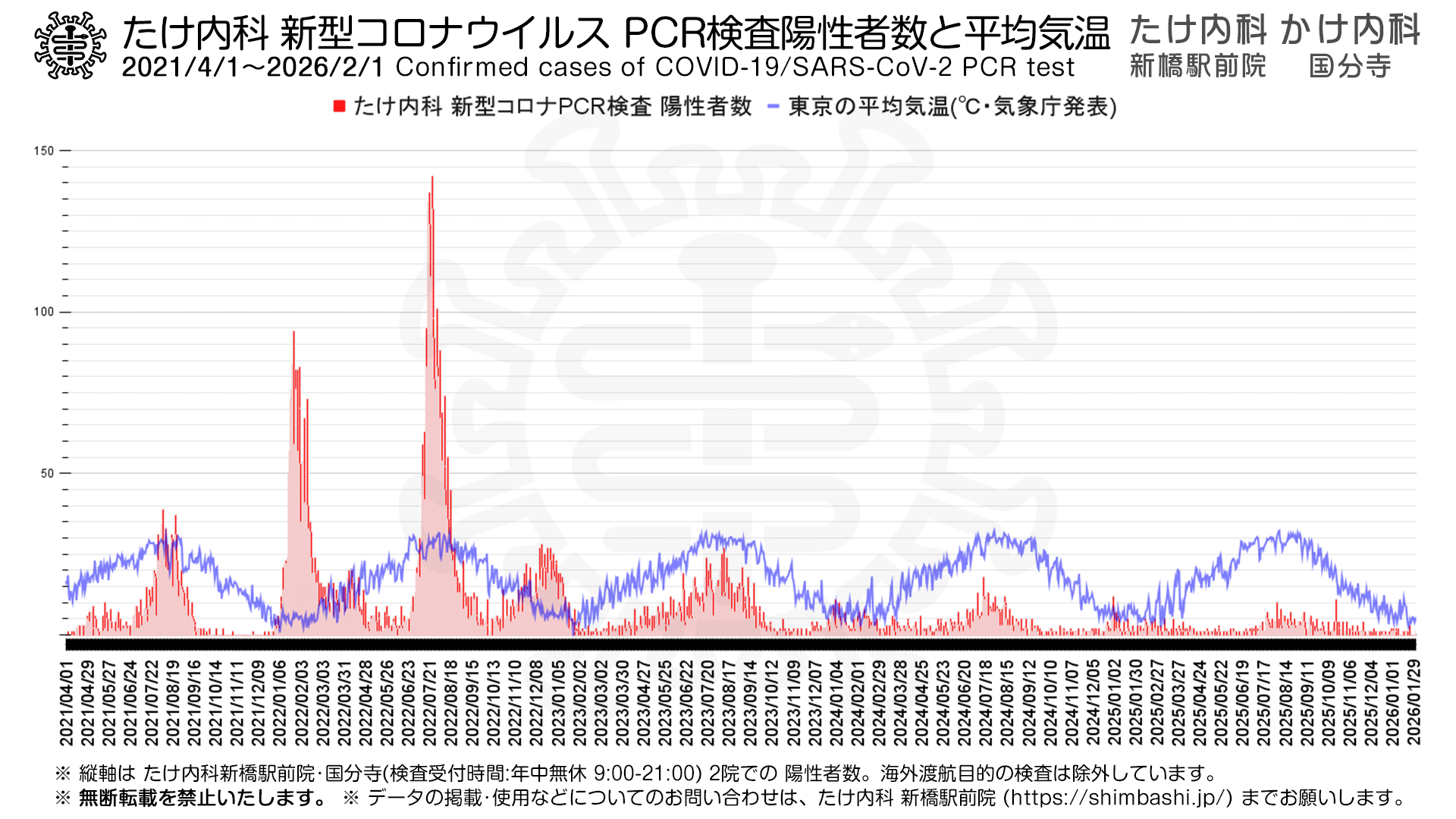 ※上記は、たけ内科 新橋駅前院・かけ内科 国分寺 にて新型コロナウイルス PCR検査を行った症例についてのデータです。